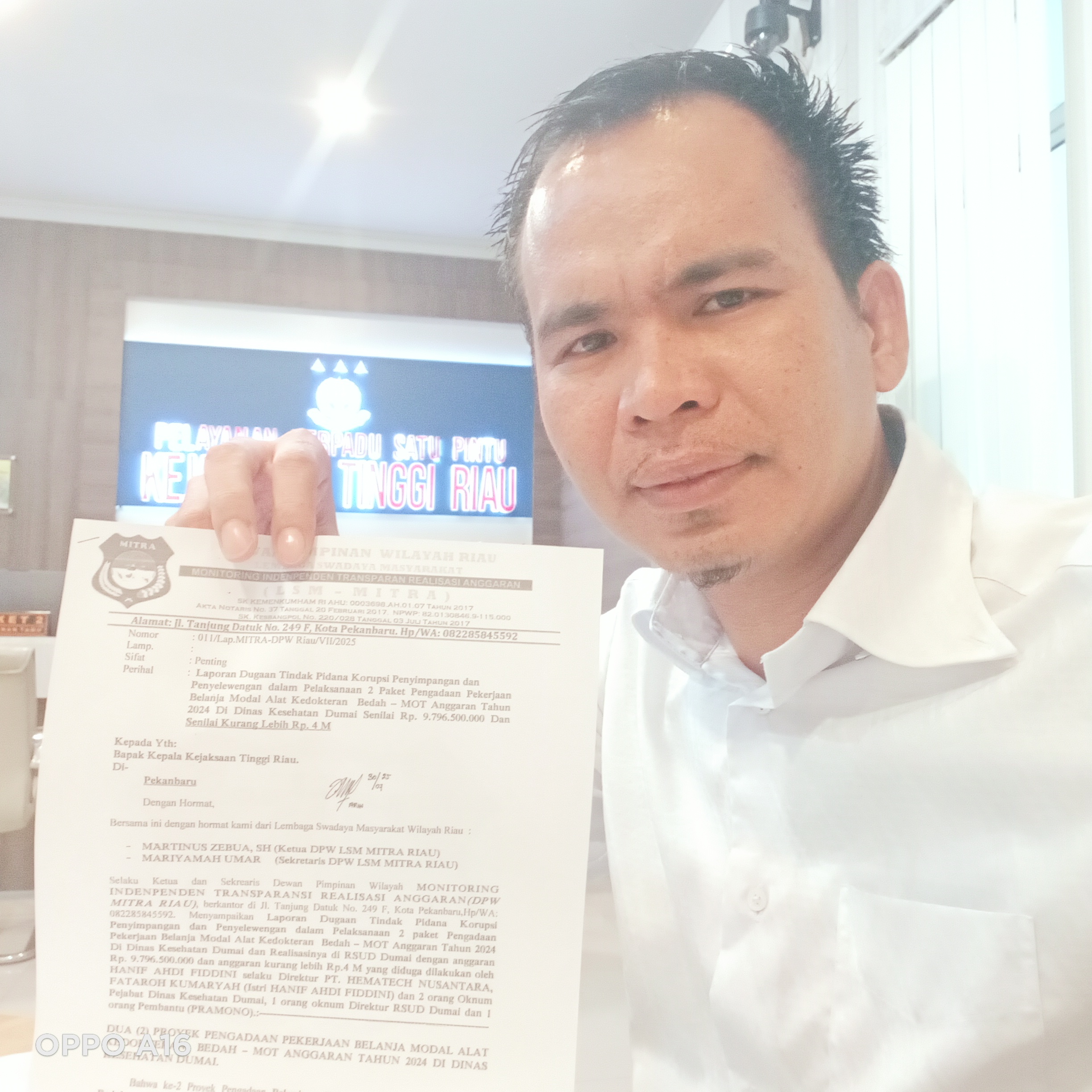 Akibat Isu Fee 7 M, Dir. RSUD Dumai dan Pramono Cs Resmi Dilaporkan dalam Dugaan Korupsi Miliaran Pengadaan Alkes RSUD Dumai.