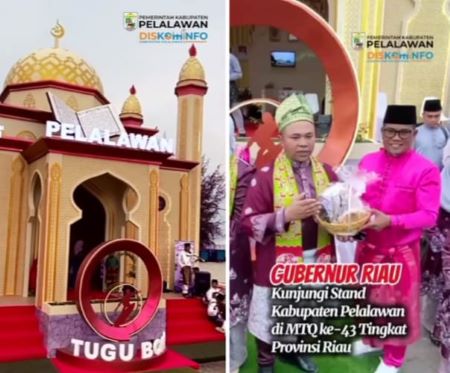 H. Zukri Bupati Pelalawan Sambut Gubernur Riau Mengunjungi Stand Kabupaten Pelalawan Di MTQ ke 43 Provinsi.