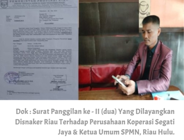 Panggilan 2 Kali Tidak Diindahkan, Dinilai Status Koperasi Segati Jaya Lebih Tinggi Dari Pada Disnaker Provinsi Riau selaku Pihak.