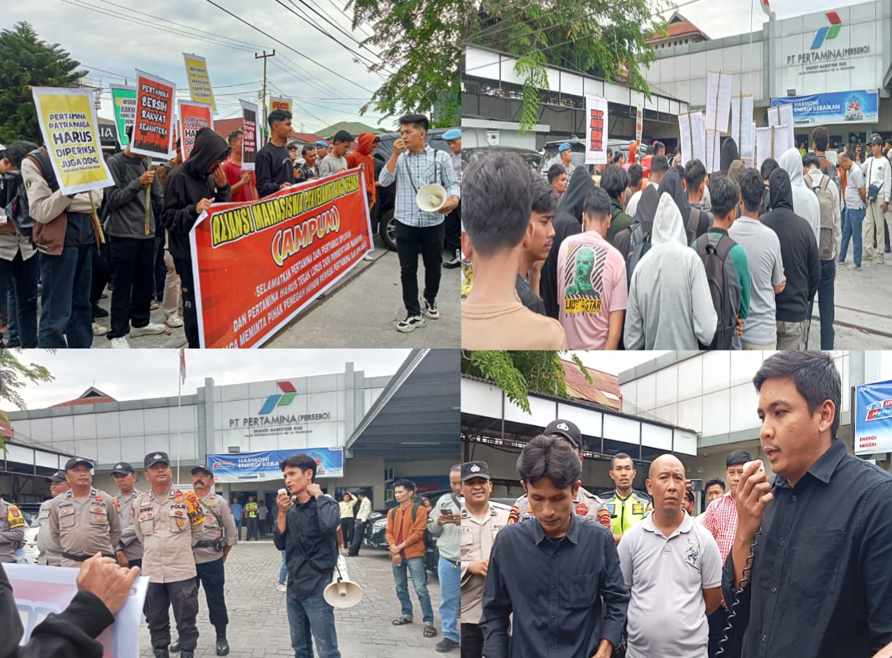 Aliansi Mahasiswa Penyelamat Uang Negara Geruduk Kantor PT Pertamina, Tuntut Dugaan Pertamax Oplosan Diusut Tuntas.