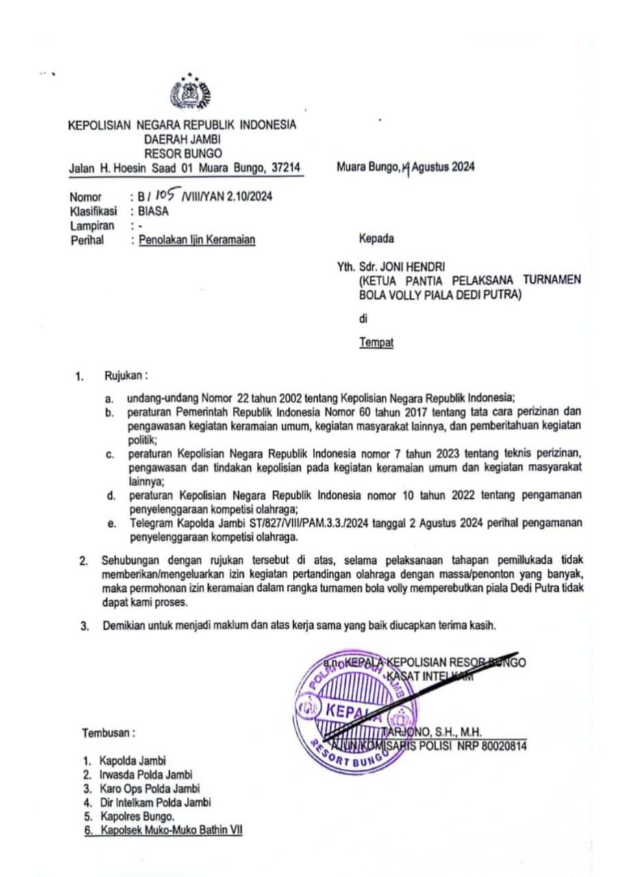 Izin Kegiatan Selama Pilkada Dipertanyakan, Netralitas Polres Bungo.