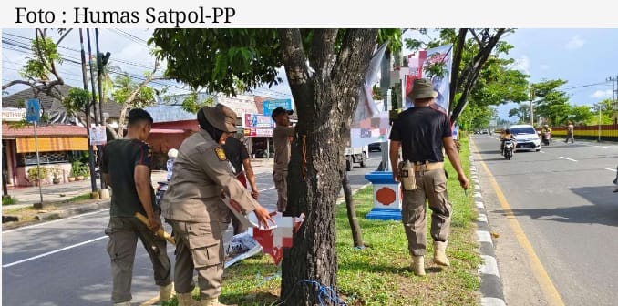 Tertipkan Baliho, Iklan dan Reklame yang Dipasang di Pohonan Jalanan Kota.