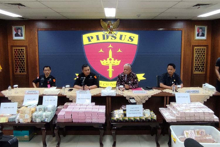 Penyidik menyita barang bukti uang tunai 74.494.427 dolar Singapura, 1.897.362 dolar Amerika Serikat, 71.200 Euro, 483.320 dolar Hong Kong, dan Rp 5.725.075.000. Penyidik juga menyita barang bukti emas Antam 51 kilogram.