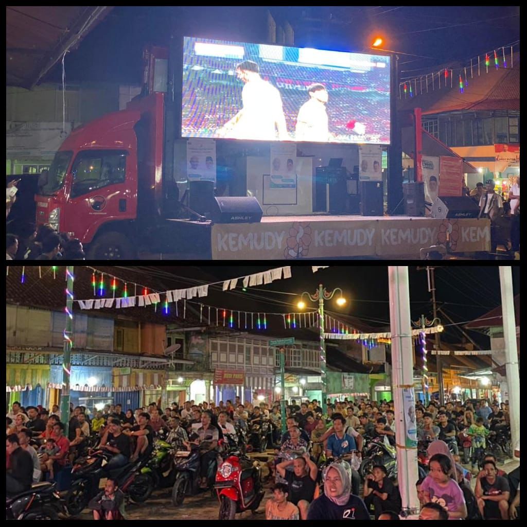 Muara Bungo: liputandetail.com - DPC PDI Perjuangan Bungo bersama Kelompok Muda Dedy Putra (Kemudy) menggelar Nobar Timnas Indonesia Vs Australia bersama masyarakat menggunakan Layar LED Truck di Pasar Lubuk Landai, Kecamatan Tanah Sepenggal, Bungo, Selasa (10/9/2024).