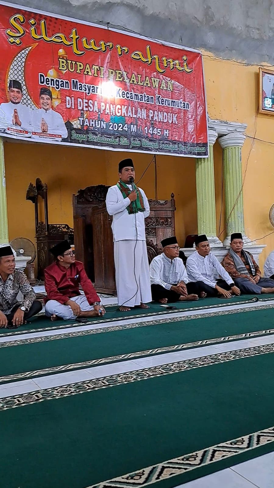 PEKANBARU: Liputandetail.com - Lakukan kunjungan Safari Ramadhan ke Masjid Taqwa Dusun Belimbing, Desa Pangkalan Panduk, Kecamatan Kerumutan, Jum’at (15/3/2024 ). Bupati Pelalawan H. Zukri SE sampaikan kabar gembira pembangunan jalan aspal di Kecamatan Kerumutan.
