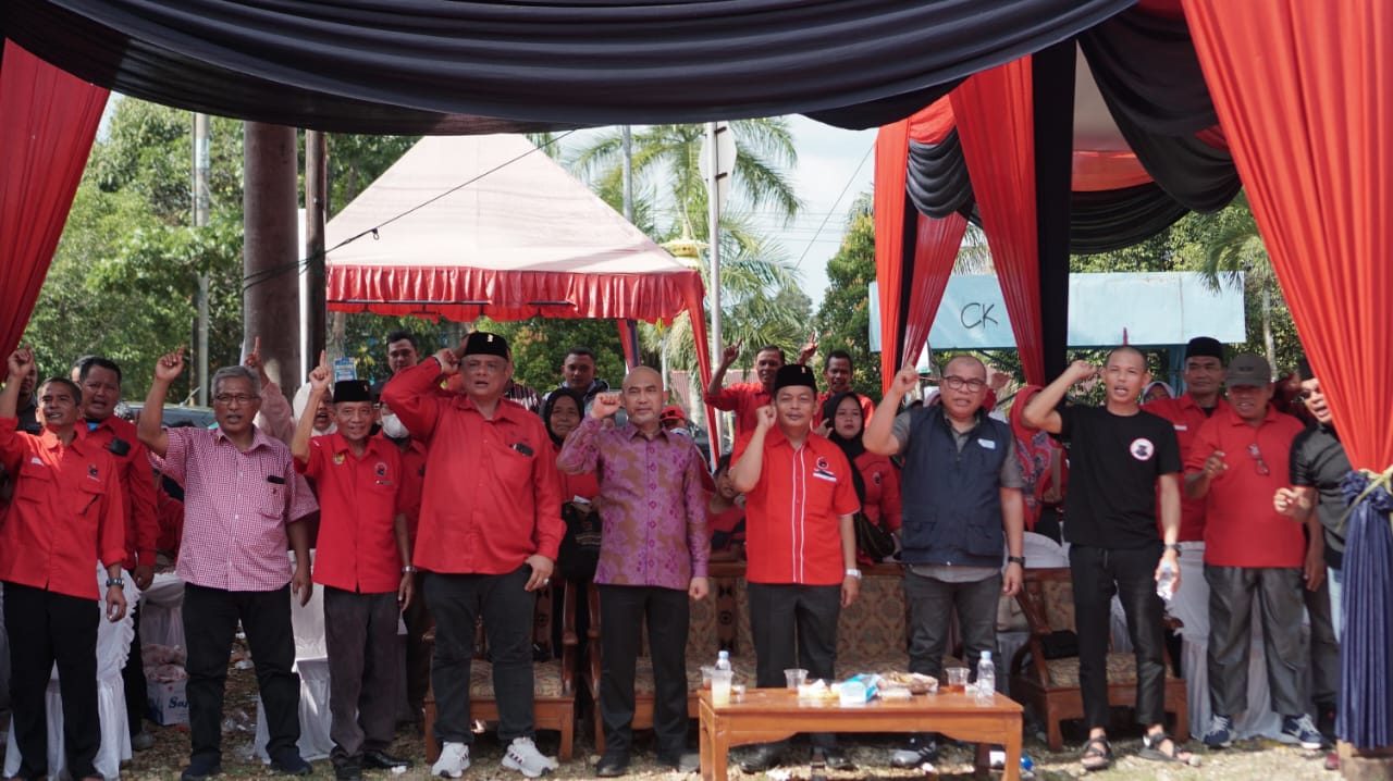 Muara Bungo -liputandetail.com - Pasangan calon bupati dan wakil bupati Bungo no urut 1 H. Dedy Putra dan Ust Tri Wahyu Hidayat hadir dalam acara pengukuhan tim pemenangan PDI Perjuangan. Senin (11/11/2024).