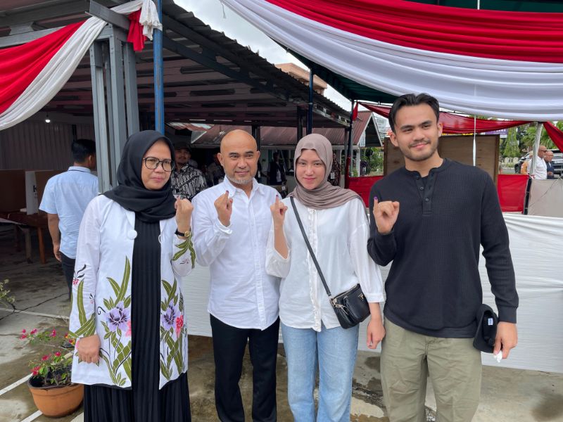 Cabup Dedy Putra Nyoblos di TPS 07 Pasir Putih Bareng Istri dan Anak