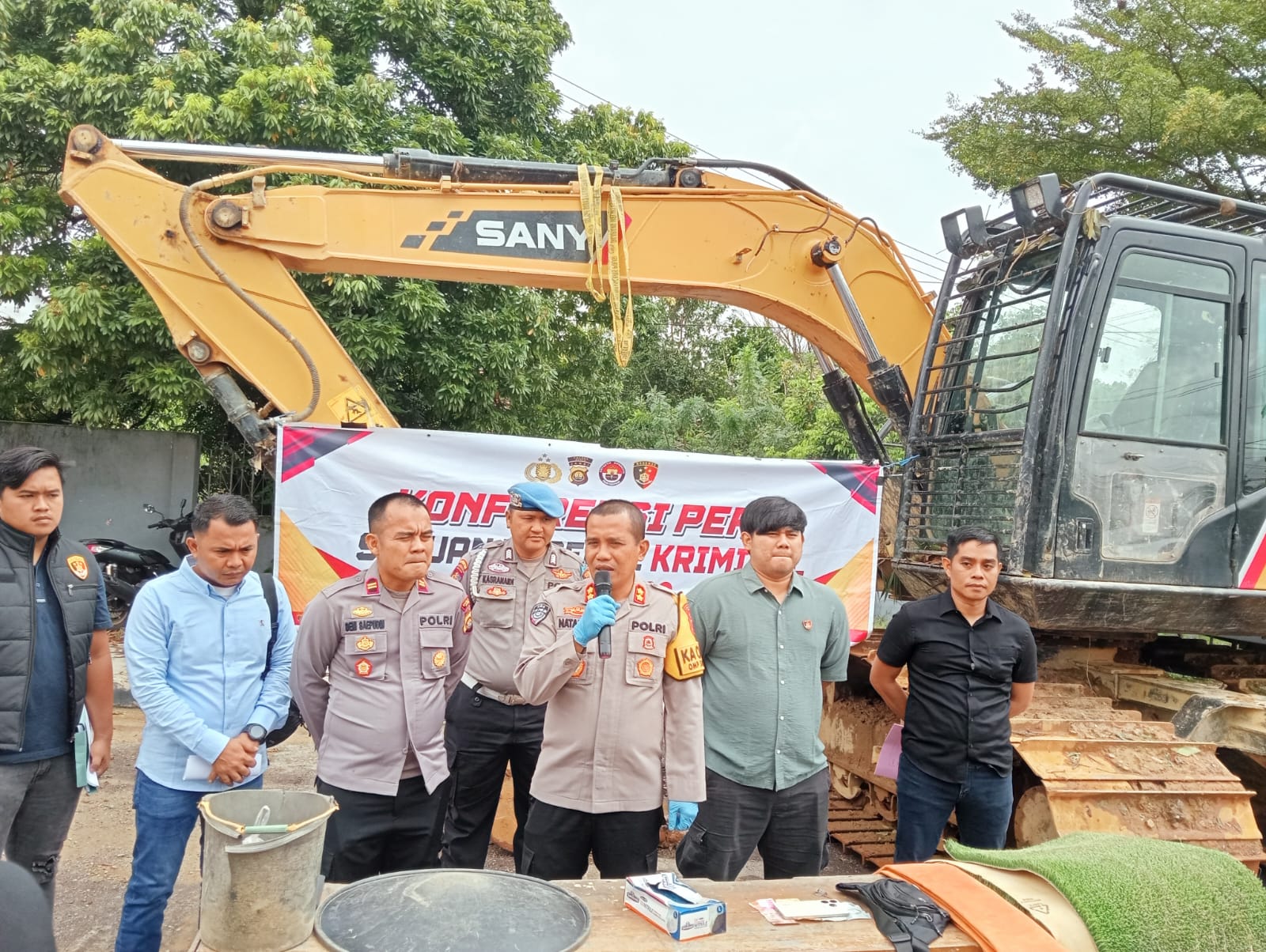 Kapolres Bungo AKBP Natalena Eko Cahyono, S.Kom menyampaikan bahwa, dengan adanya alat berat excavator merek SANY yang telah kita amankan kemarin pada tanggal 26 Maret 2025, nanti akan dijelaskan detail oleh kasat Reskrim Polres Bungo,”ujarnya, Kamis (6/03/2025).